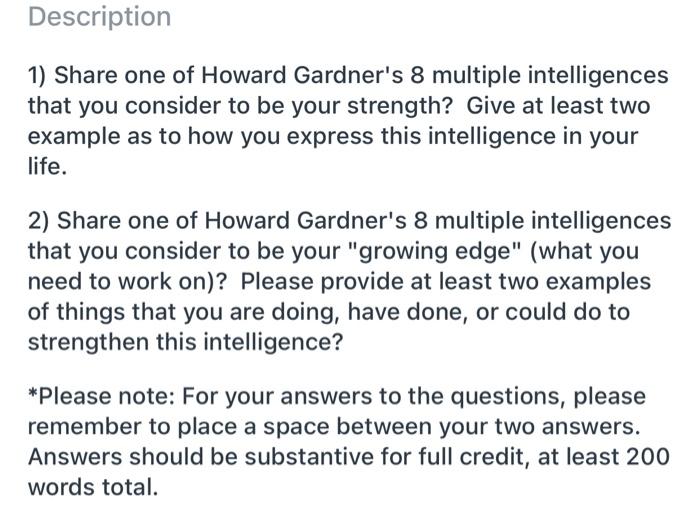 Solved Description 1 Share One Of Howard Gardner S 8 Chegg Com